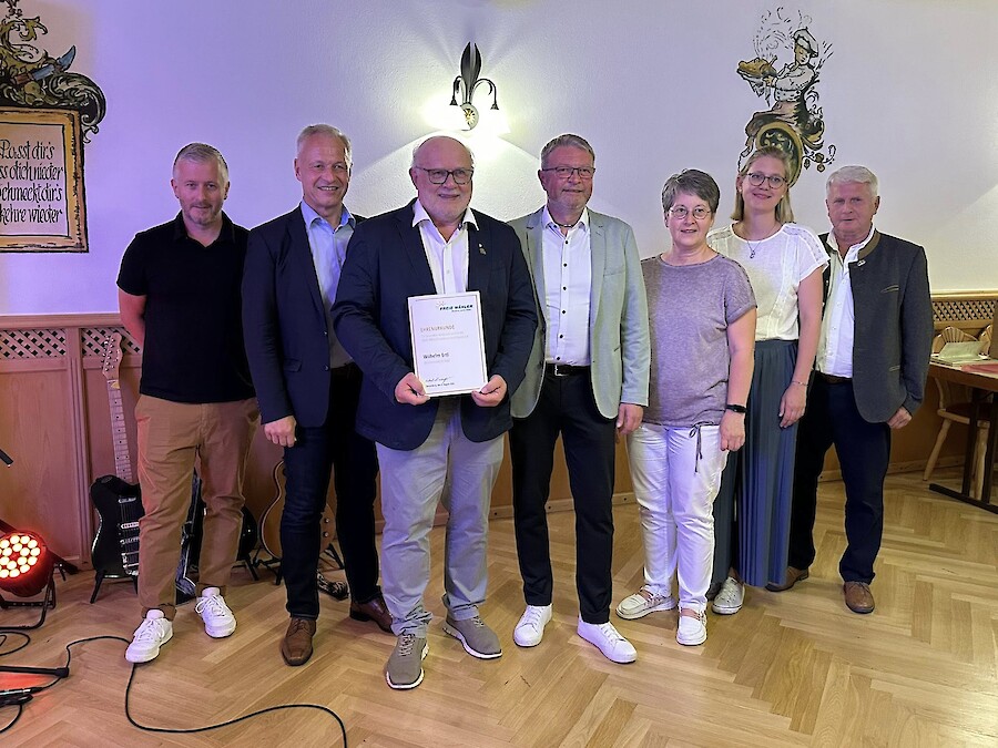 Stadtrat und Fraktionsvorsitzender Wilhelm Ertl feiert am 6.8. seinen 70. Geburtstag. Zur Gratulationscour erscheint neben vielen geladenen Gästen die komplette Stadtratsfraktion der Wählergruppe mit Thorsten Grädler an der Spitze und FW-Kreisvorsitzende und Stv. Landesvorsitzende Hans Martin Grötsch. Letzter verleiht an Wilhelm Ertl die höchste Ehrung des FW-Landesverbandes, die Ehrennadel in Gold, für dessen langjährige Verdienste auf Orts- und Kreisebene.